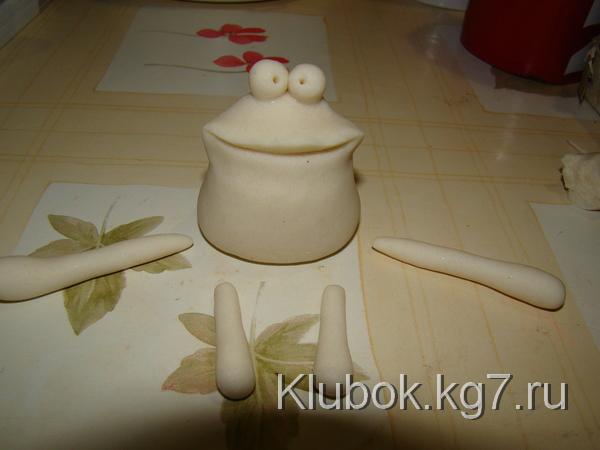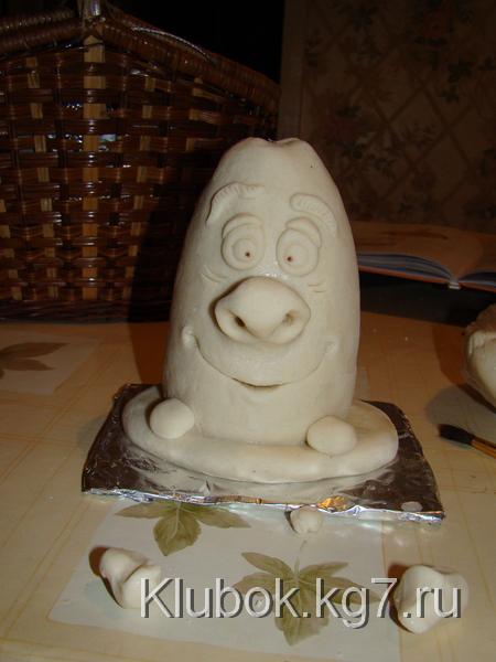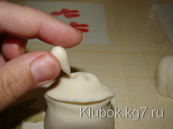 Далее лепим нос,глаза и.т.д.Не забываем, что все детали приклеиваются водой.