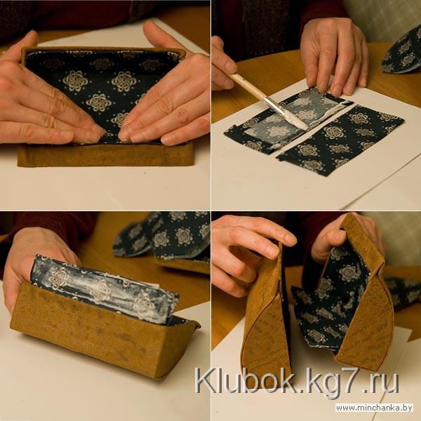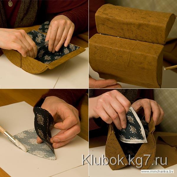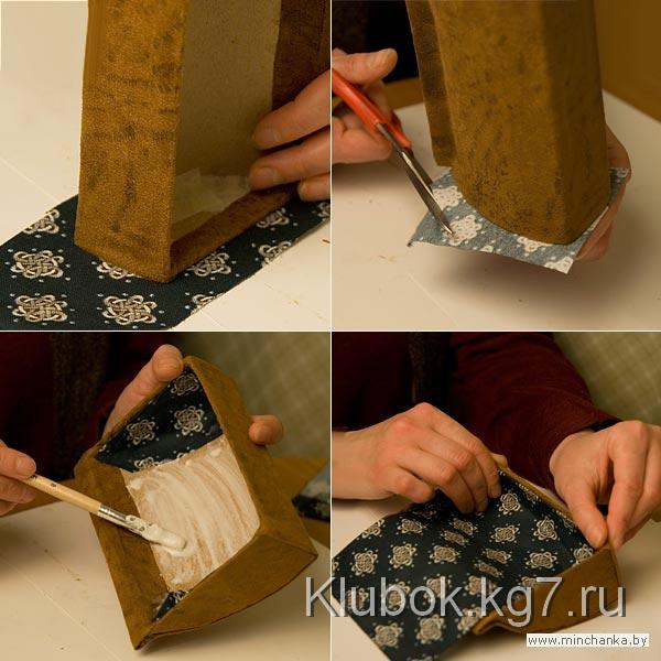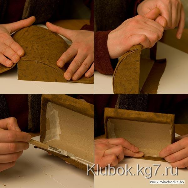 Продолжаем оклейку, подворачивая ткань внутрь, предварительно проклеивая припуски.