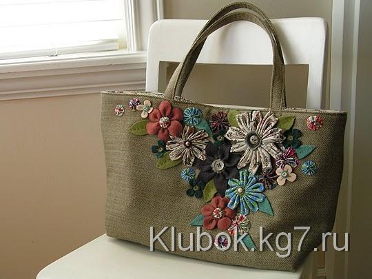 Дальше самое интересное! Проявляя свою творческую фантазию, пришиваем цветочки один за другим, используя декоративные швы контрастной ниткой.