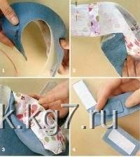 Выкройте и сшейте на машине небольшой прямоугольник из джинсовой ткани – для