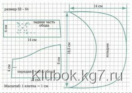 хлопчатобумажной ткани по 4 детали для ободка козырька. Стачайте их так, чтобы