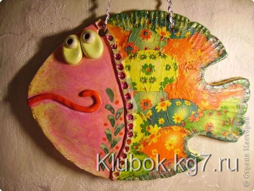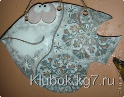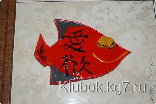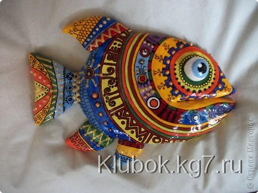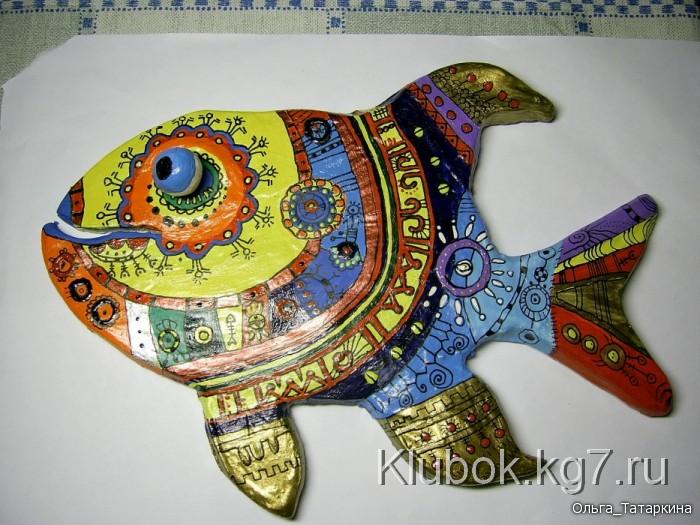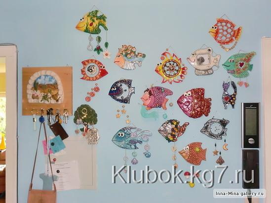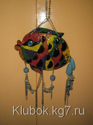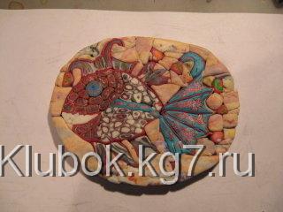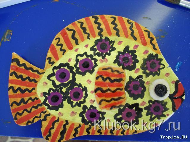 Чешуя последней рыбки выложена из скорлупы яйца.