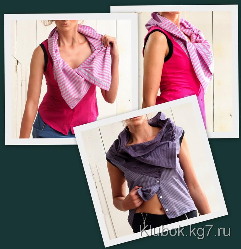 Но шить совсем необязательно... Даже не нужно ничего резать! Смотрите видео- ролик "Шесть способов надеть мужскую рубашку"