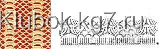 1 ст. с накидом, 1 возд. петля, 2 ряд- над получившимися дырочками вяжем арочки