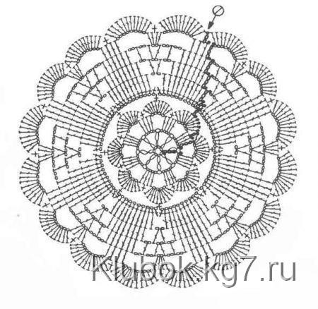 ниткой, объединяем её в кольцо, вывязываем из серединки 12 столбиков без нкида,