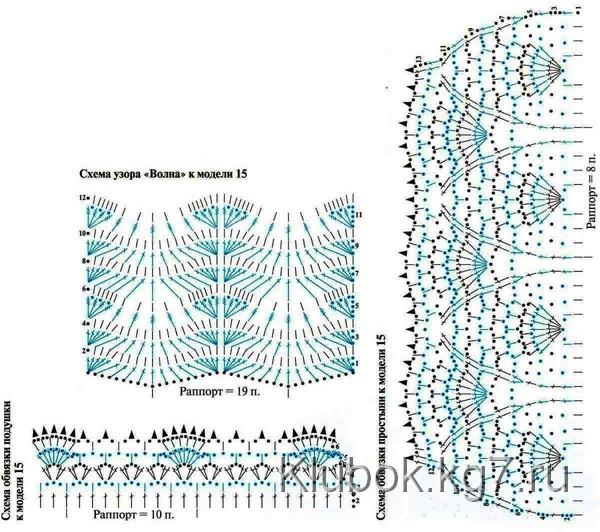 обратными рядами согласно схеме узора «Волна» по 14-й ряд включительно. Нить