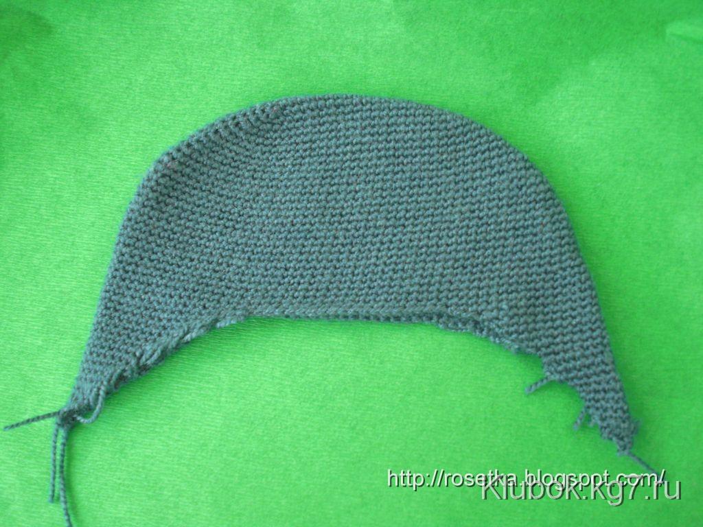 Затем связала столбиками без накида образец, перевела на него в полный размер выкройку козырька и высчитала эту фору в столбиках без накида.