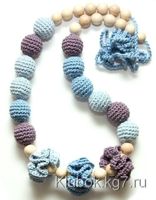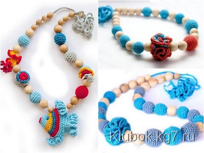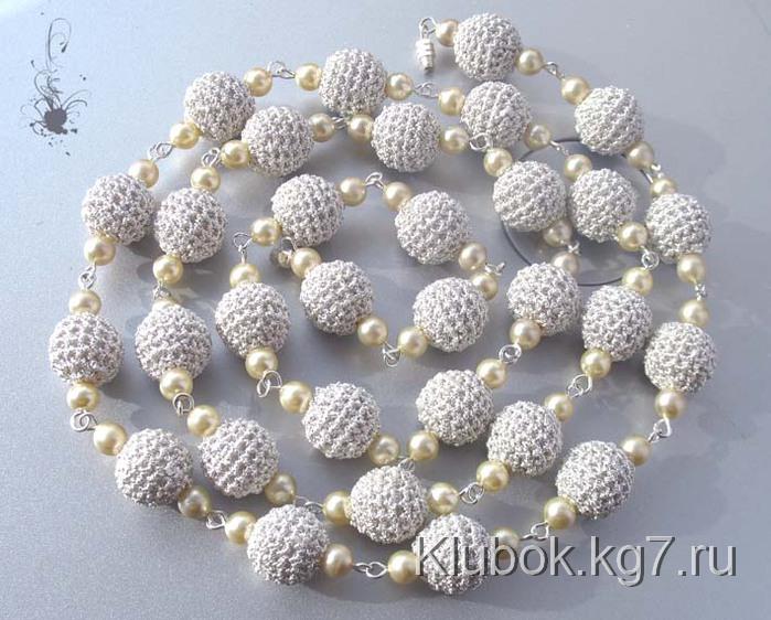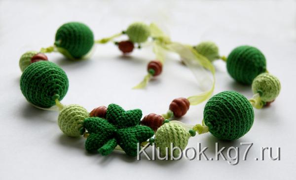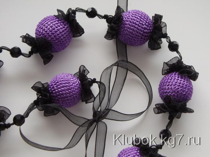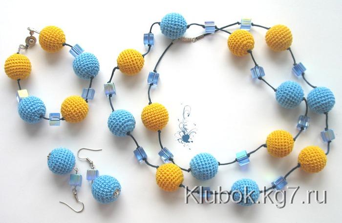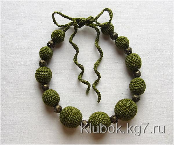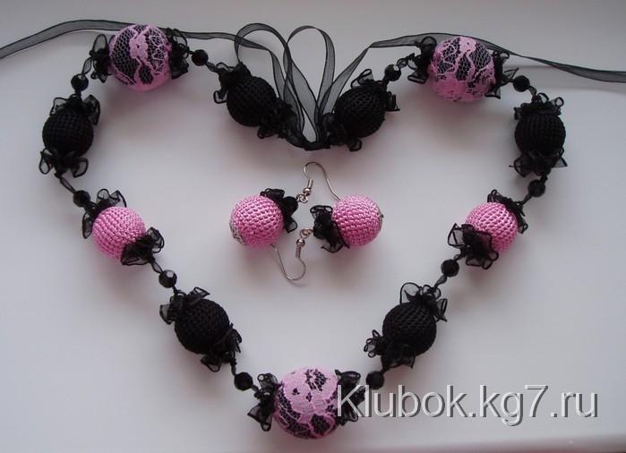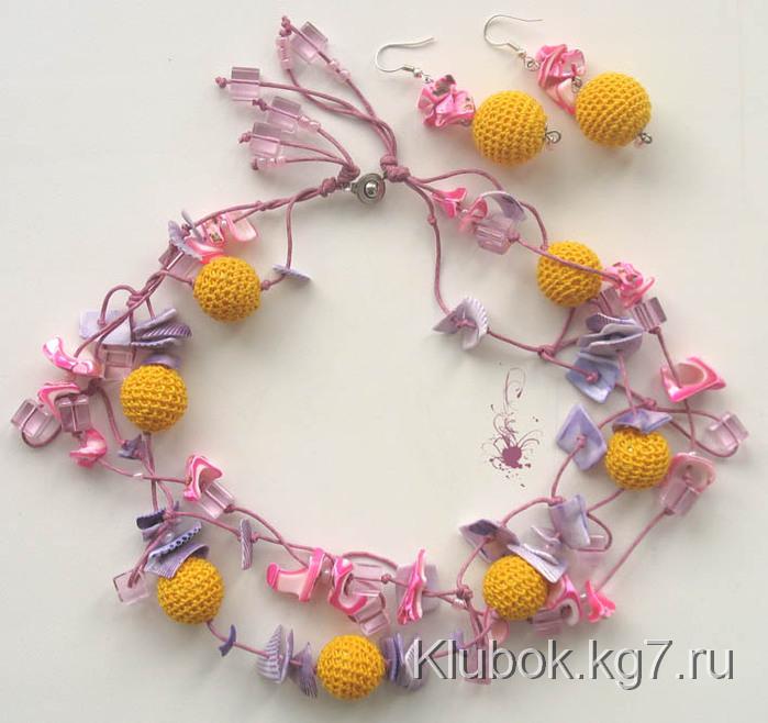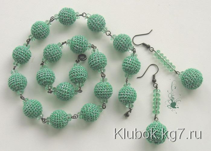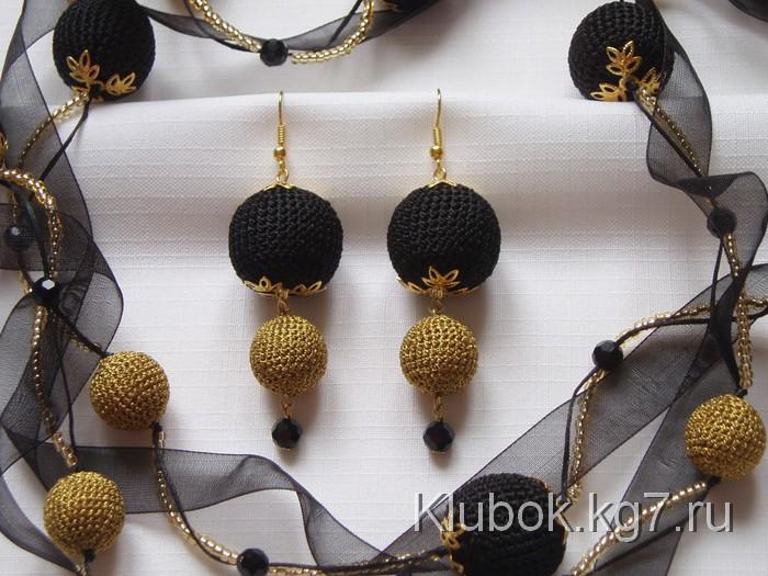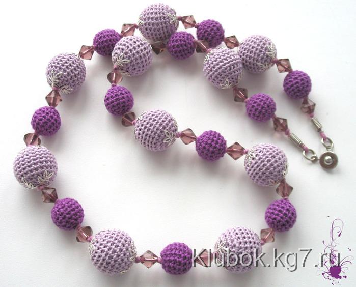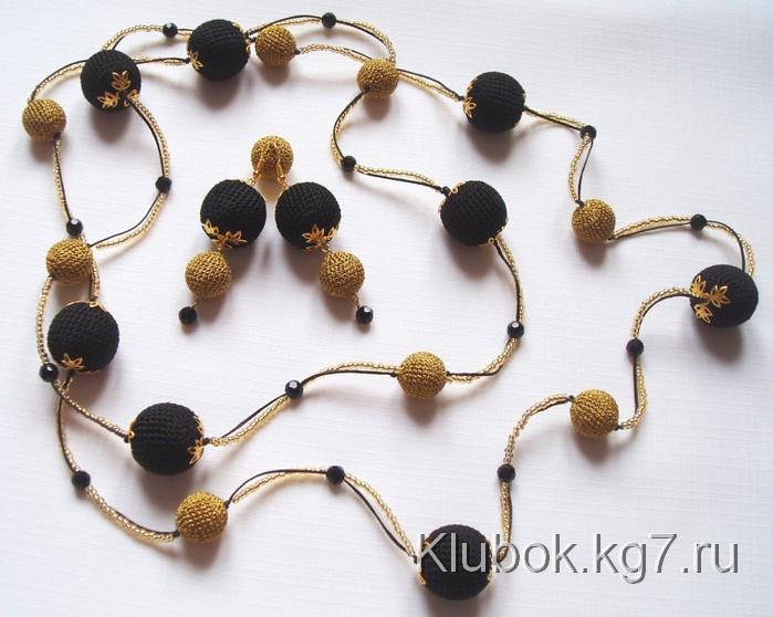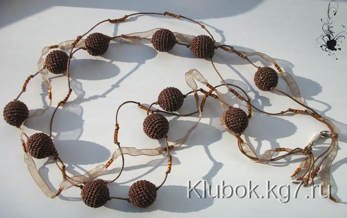 Какие украшения можно связать крючком? – как ни странно самые разные и очень стильные. Например бусы и серьги. Каждая бусинка вяжется отдельно, а затем нанизывается на шнур или ленту.