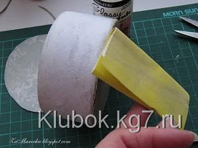 кружок, который будет внешним донышком. Приклеиваем его к картонке нижней части,