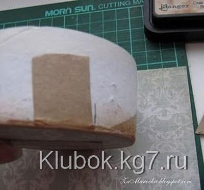теперь полосочки тонируем. И приготовим ленточку для прикрепления крышки. Ленточку-веревочку приклеиваем внутрь. Клеем на клей Момент-Кристалл
