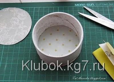 скрап-бумаги вырежем таким же образом 2 кружочка для донышка и 2 для крышки.