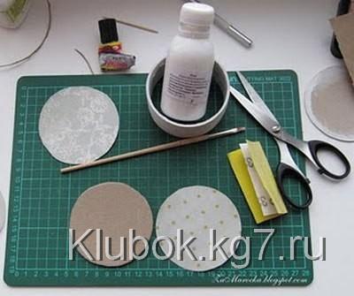 скрап-бумаги вырежем таким же образом 2 кружочка для донышка и 2 для крышки.