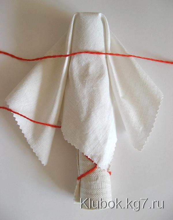 мягкой. Надеваем косынку. Все этапы слегка закрепляем ниткой. И пелёнку, хорошо
