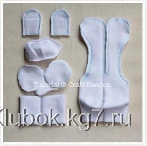 Сшейте и набейте синтепоном остальные детали зайчика. Вышейте