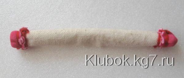из одного квадрата делаем скрутку, обвязываем на концах, надеваем и обвязываем