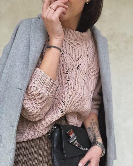 Стильный свитер ажурным узором