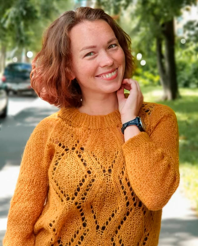 Sweater knitted with knitting needles