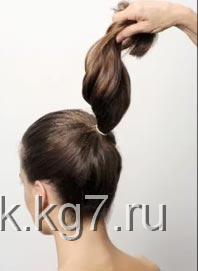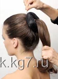 Сделайте высокий хвостик, используйте пальцы, чтобы прическа была гладенькой.