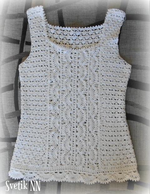 Вот так я вяжу целиковую спинку с боками у белого топа.Чтобы сделать приталивание, можно вязать по схеме с источника. А если размер будет большой, то вяжется прямо.