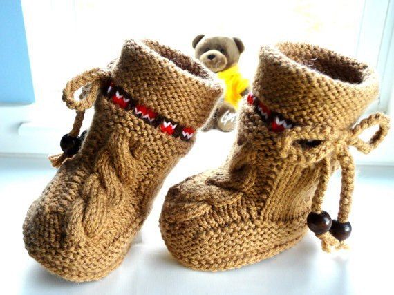 Finishing: weave in all ends. Insert ribbon or any ties of your choice into the holes. Knit the other bootie in the same way.